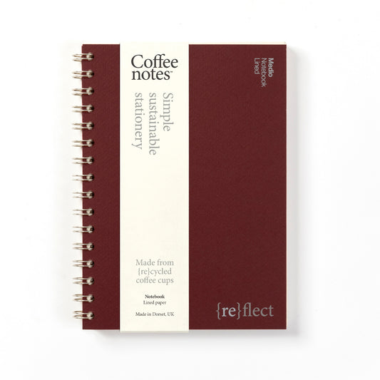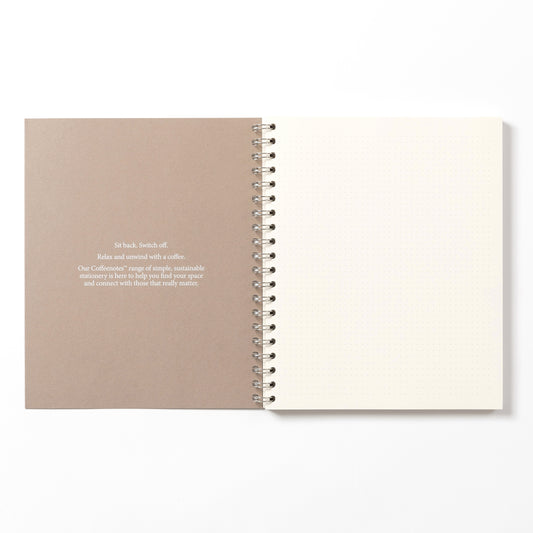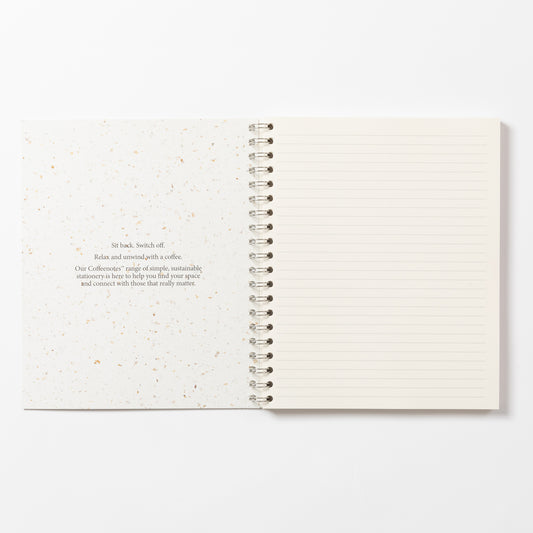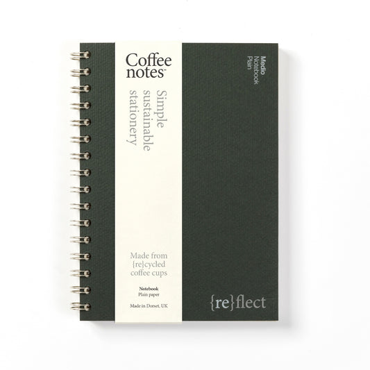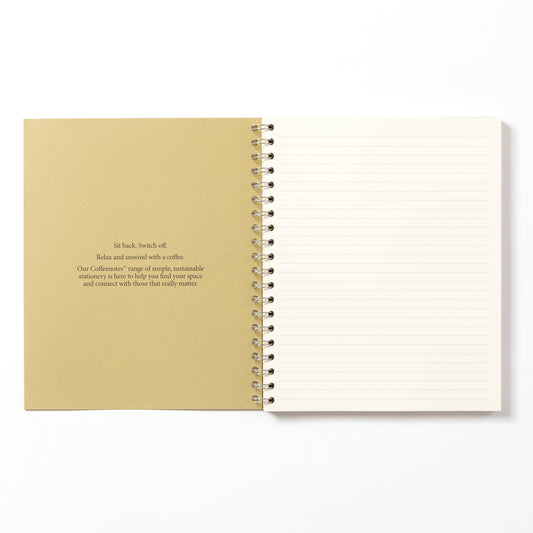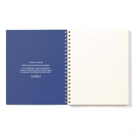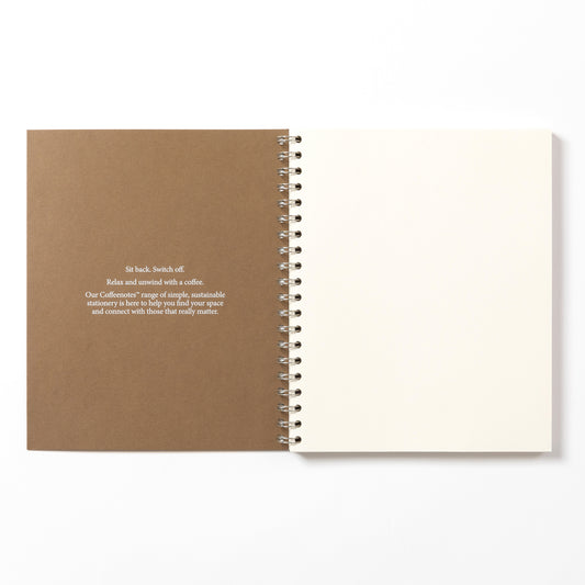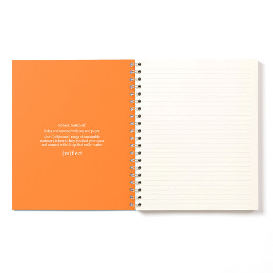 Our beautifully minimal, award winning, sustainable Wirebound Notebooks are made from {re}cycled coffee cup paper and {re}purposed waste from food, drink and textile manufacturing. Lay flat design and creamy rich paper gives a seamless writing experience.