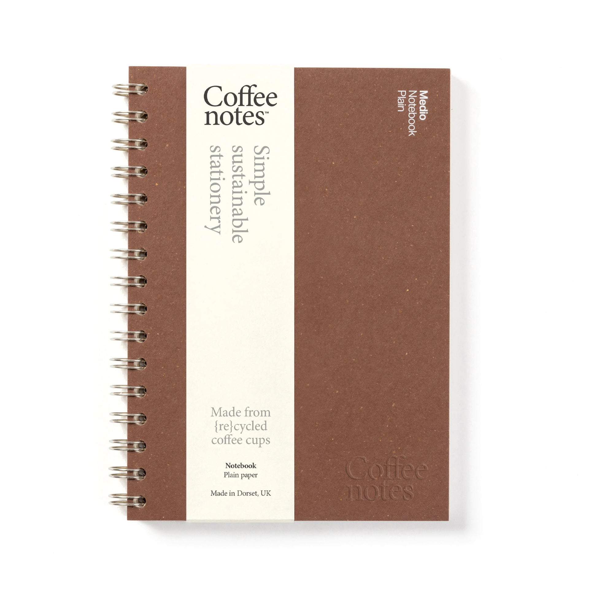 Our top selling Wirebound Notebooks are plastic free, and sustainably made from {re}cycled coffee cup paper. The beautifully minimal covers are made from {re}purposed beer waste.